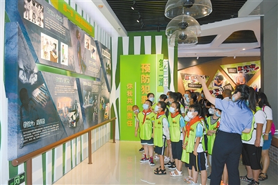 8月14日下午,小讀者們來到廊坊法治宣教中心接受普法教育。在工作人員的引導(dǎo)下,同學(xué)們來到“廊坊市關(guān)愛青少年健康成長教育中心”,豐富多彩的互動系統(tǒng),讓大家感受到了法律的莊嚴(yán),認(rèn)識到違法犯罪的危害。隨后,同學(xué)們又參觀了禁毒教育基地,直觀了解了毒品的種類及社會危害。