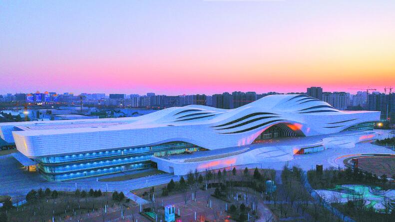 夕陽映襯下的廊坊絲綢之路國際文化交流中心仿佛一道“流動的云”。