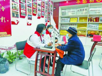 馨境界社區(qū)組織志愿者為居民量血壓。