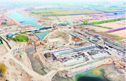 4月16日,在北運(yùn)河廊坊段中心碼頭施工現(xiàn)場(chǎng),大型起重機(jī)、挖掘機(jī)全馬力作業(yè),工程車往來(lái)穿梭,工人們緊張忙碌,干得熱火朝天。