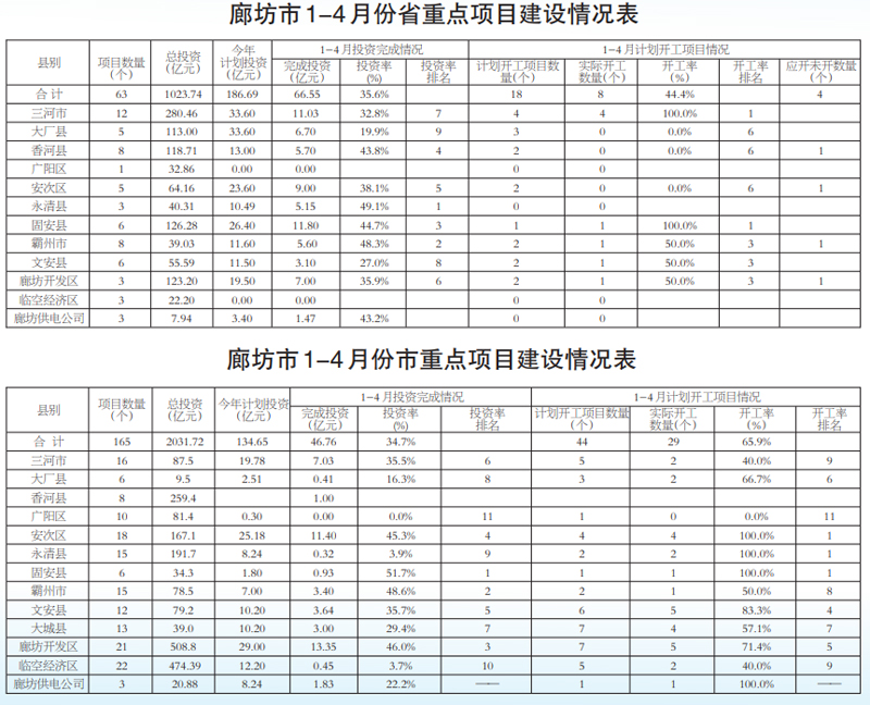廊坊市2021年1-4月份省、市重點(diǎn)項(xiàng)目建設(shè)情況通報(bào)