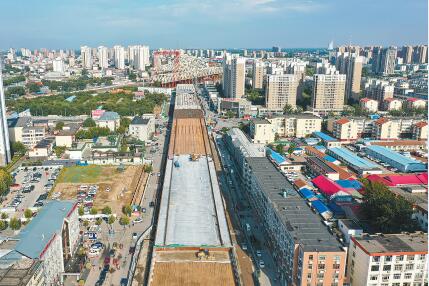 光明道上跨鐵路橋建成后,將實現(xiàn)光明東道和光明西道全線貫通,有效緩解市民出行壓力,有利于打造以京滬高鐵廊坊站為核心的商貿(mào)圈,助力廊坊成為京津商貿(mào)圈的“金腰帶”。 光明道上跨鐵路橋引橋段施工現(xiàn)場。