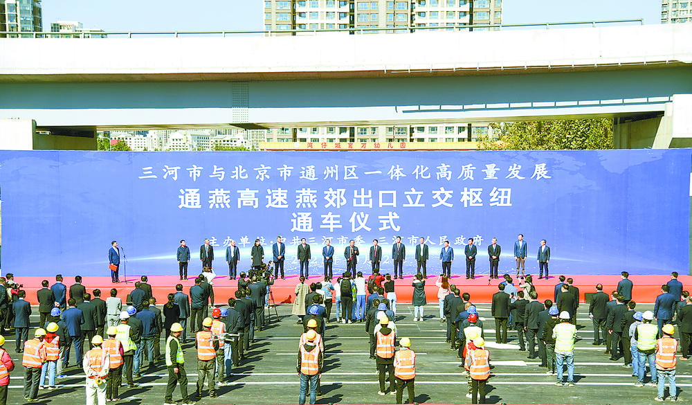 在通燕高速西出口立交橋畔,伴隨著市委書記楊曉和高聲宣布“通燕高速燕郊出口立交樞紐正式通車!”首批通行車輛魚貫而行,多年的平交路口變立交通途,為三河市與通州區(qū)交通一體化高質(zhì)量發(fā)展按下“快進(jìn)鍵”。