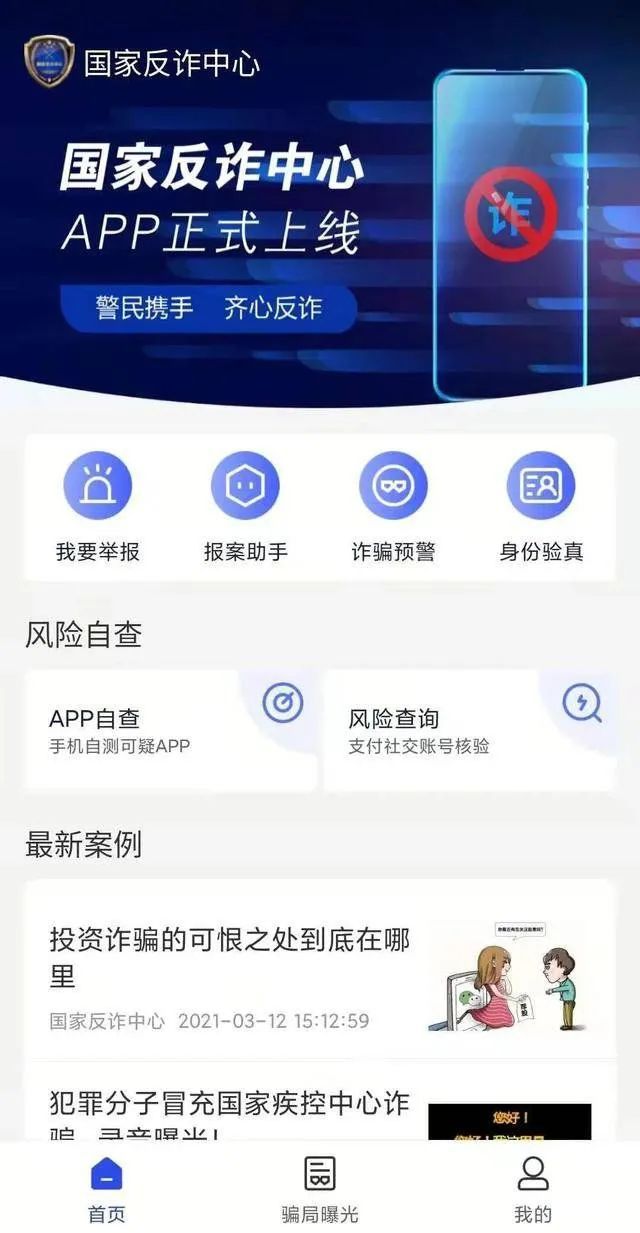 “國(guó)家反詐中心”App含有三大板塊,“國(guó)家反詐”、“我要舉報(bào)”、“報(bào)案助手”等。