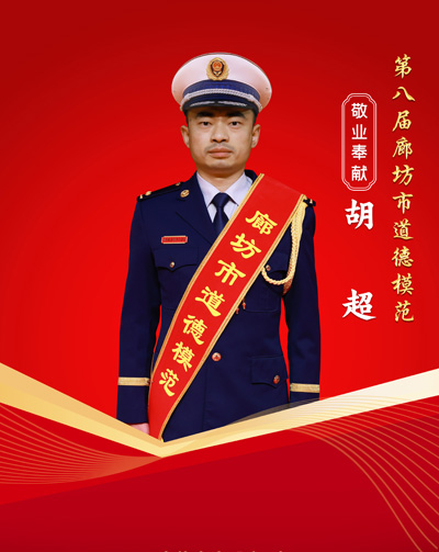 胡超?男,1990年出生,中共黨員,廊坊市消防救援支隊東安路特勤站副站長。榮立個人三等功5次,獲嘉獎5次,榮獲河北省第四屆“消防之星”稱號。