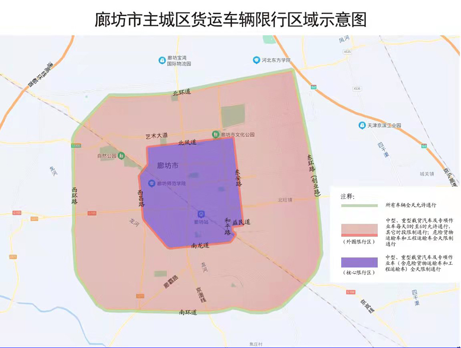 為進一步優(yōu)化營商環(huán)境,便利貨運車輛在城市道路通行,保障城市生產(chǎn)生活運行需求,根據(jù)《中華人民共和國道路交通安全法》、《中華人民共和國大氣污染防治法》等法律規(guī)定,決定調(diào)整廊坊市主城區(qū)貨運車輛限行措施?,F(xiàn)通告如下:
