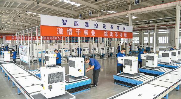 圖為三河市同飛制冷股份有限公司生產(chǎn)車間內(nèi),工人正在生產(chǎn)精密智能溫度控制設(shè)備。 記者 劉向 攝(資料片)