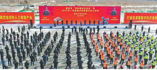 圖為廊坊市“項(xiàng)目建設(shè)攻堅(jiān)年”暨2022年一季度重點(diǎn)項(xiàng)目集中開工活動廊坊開發(fā)區(qū)會場。