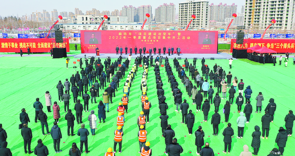 11點18分,楊曉和宣布:“廊坊市‘項目建設攻堅年’中部區(qū)縣一季度重點項目集中開工!”隨后建設現(xiàn)場樁機啟動、工程車鳴笛,新一輪項目建設的“沖鋒號”再一次在廊坊大地上吹響。