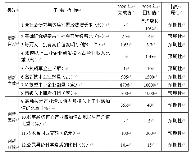 表3?“十四五”時(shí)期全市科技創(chuàng)新主要目標(biāo)