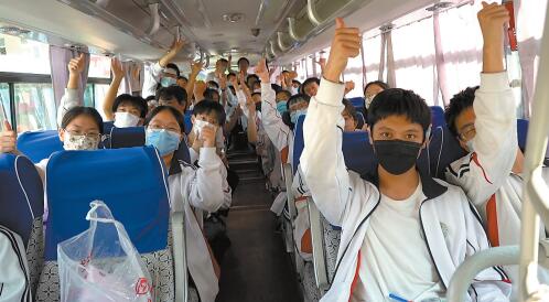 圖為送考公交車將高考考生安全送達(dá)考場(chǎng)。 記者 劉玉靜 通訊員 陳加琨 攝