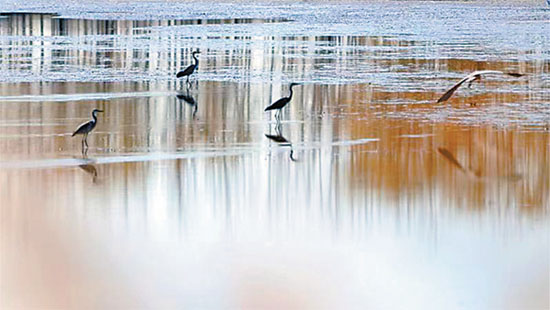 生態(tài)環(huán)境的持續(xù)好轉(zhuǎn),吸引多種野生鳥類棲息聚集。每年約有10萬只近100種各類鳥類在此繁殖棲息,其中包括黑鸛、白鷺、灰鷺、黑天鵝等20多種國家級保護(hù)鳥類。這里已成為當(dāng)?shù)匾坏漓n麗的風(fēng)景線,慕名前來觀光攝影的游客絡(luò)繹不絕。