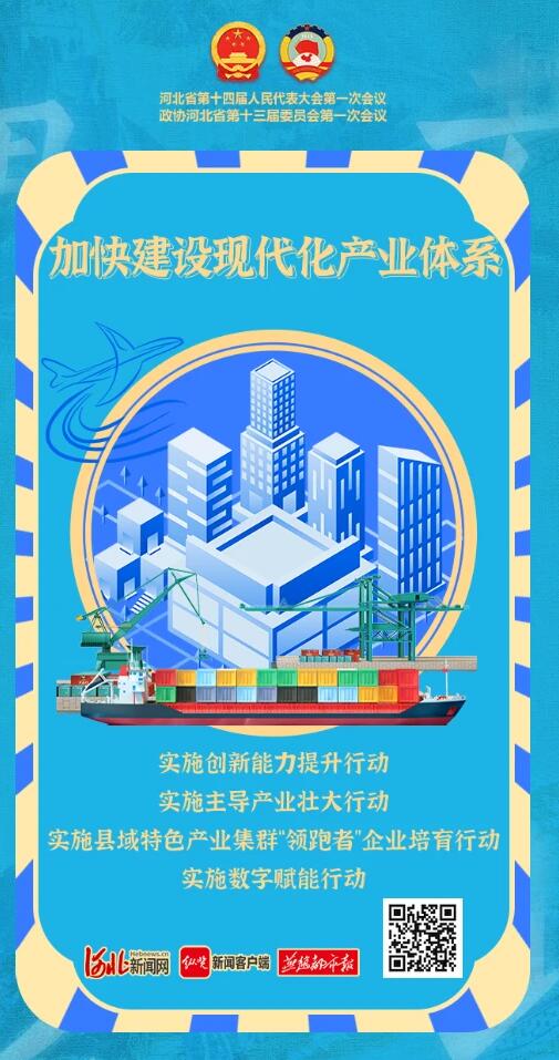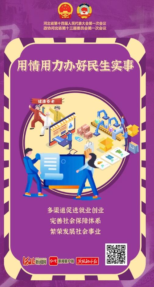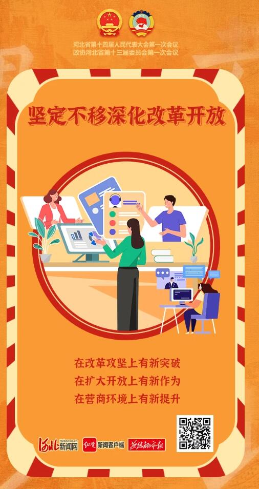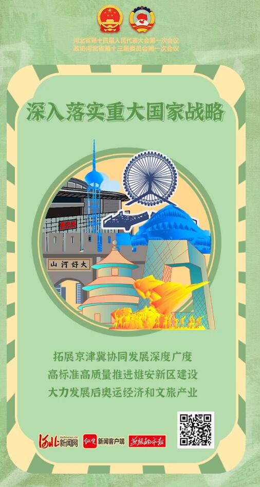 2023年1月11日上午,河北省第十四屆人民代表大會第一次會議在石家莊開幕。省長王正譜代表河北省人民政府向大會作政府工作報告。報告提出,2023年河北省重點做好八個方面工作。一組海報,帶您看2023河北發(fā)力點↓