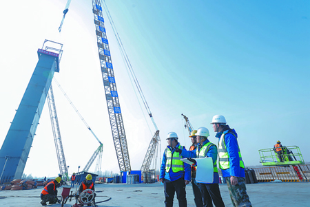 2月7日,由中建二局安裝工程有限公司承建的廊坊臨空經(jīng)濟(jì)區(qū)永定河特大橋南主橋項(xiàng)目現(xiàn)場(chǎng),工程師正在鉆研結(jié)構(gòu)圖紙,梳理工作進(jìn)度,全力以赴推進(jìn)工程建設(shè)。