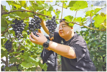“我們種植了70多畝葡萄,有玫瑰香、夏黑、摩爾多瓦等10余個品種,每年能產5萬公斤,產值約60萬元,主要銷往京津冀地區(qū)各大果蔬市場。除訂單銷售外,我們還開發(fā)了游玩采摘等活動,進一步增加收入?!惫贪部h賈各莊村葡萄種植戶許鳳明說。