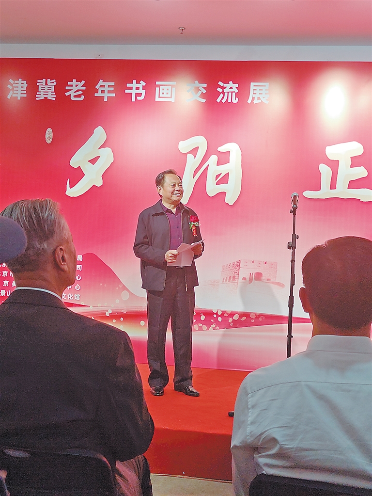 市老年書畫研究會(huì)會(huì)長(zhǎng)郭振一在書畫活動(dòng)中發(fā)言。通訊員 倪志峰 攝