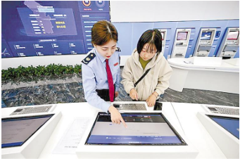近日,在安次區(qū)稅務(wù)局稅務(wù)綜合服務(wù)大廳,工作人員在幫助納稅人使用自助云端電子稅務(wù)局辦理業(yè)務(wù)。記者 張歡 攝