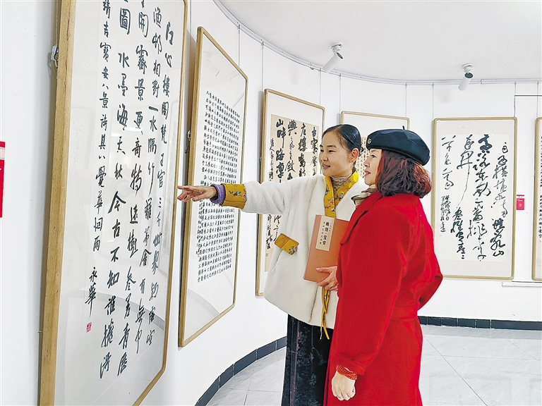 圖為市民正在參觀書畫展。 記者 張?zhí)鸶?攝