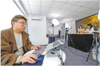 永清縣時(shí)代空港跨境電商、雙創(chuàng)產(chǎn)業(yè)園開(kāi)園當(dāng)日,工作人員正在調(diào)試跨境電商直播設(shè)備。記者 陳童 攝