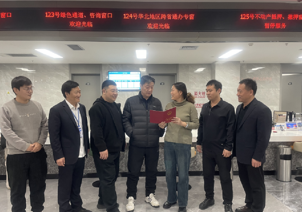 2023年12月27日,廊坊市與北京市通力合作,為“人在北京、房在三河”的申請人辦理了“京津冀晉蒙”五省市跨省通辦首單業(yè)務(wù)。河北省自然資源廳詹曉陽廳長、不動產(chǎn)登記局李金鹿局長、廊坊市自然資源和規(guī)劃局系統(tǒng)工會主任鄭河達同志參加了首證活動現(xiàn)場。