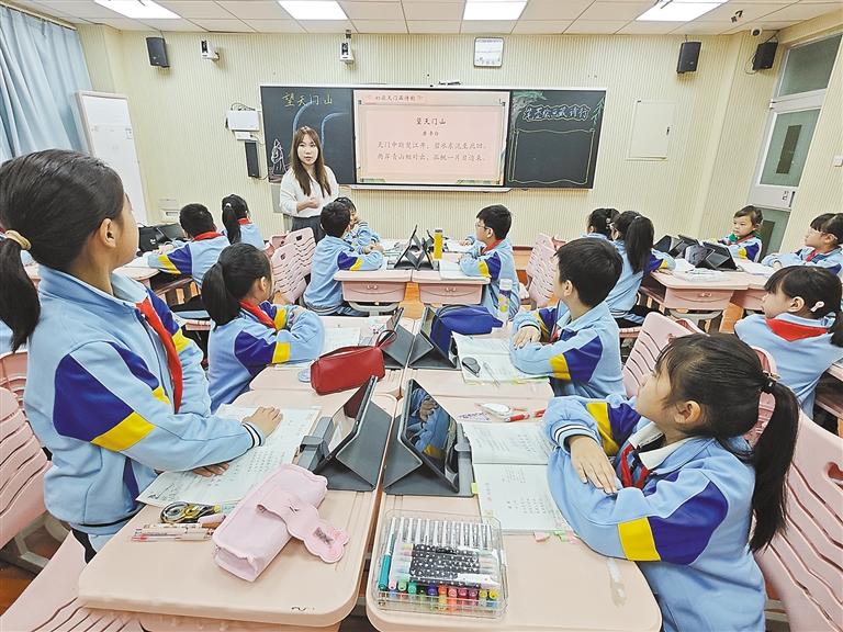 圖為市第六小學(xué)老師通過AI課堂分析系統(tǒng),為學(xué)生們上創(chuàng)意語文課。 本報通訊員 劉潔晶 本報記者 王滿鳳 攝