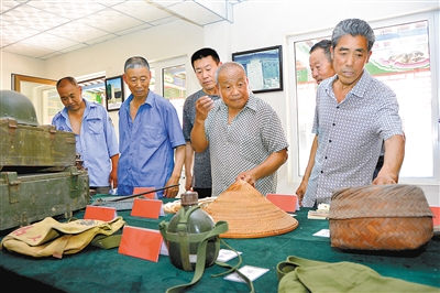 2017年7月1日,占地2畝、耗資百余萬的文安縣大柳河鎮(zhèn)高村幸?;ブ赫酵度脒\(yùn)行。圖為老人正在參觀互助小院內(nèi)村史館的老物件。(資料片)記者 賈珺 攝