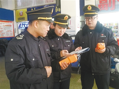 執(zhí)法人員檢測(cè)市汽車(chē)客運(yùn)總站空氣質(zhì)量。 《廊坊日?qǐng)?bào)》記者 馬越 攝