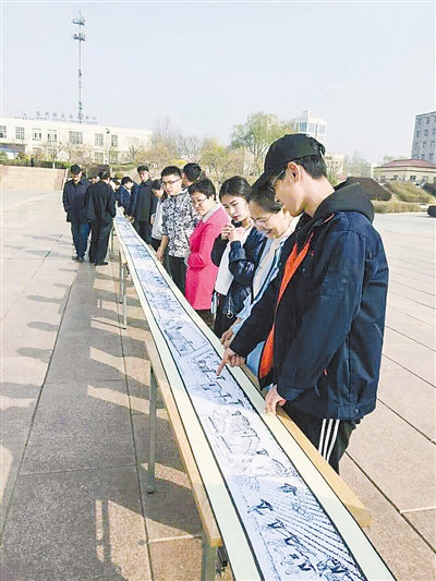 據(jù)安次區(qū)圖書館館長張磊介紹,2017年,王景堂將畫卷贈送安次區(qū)圖書館。為方便展覽,安次區(qū)圖書館通過數(shù)字化處理將畫卷制成345個電子文件,用影音軟件最終合成《七十年鄉(xiāng)村夢》電子版,展于安次區(qū)圖書館大屏幕。展覽期間,前來觀賞的市民眾多,大家紛紛贊嘆:“不愧是一部改革開放40年的壯麗史詩,一曲昂揚向上的精神贊歌”。