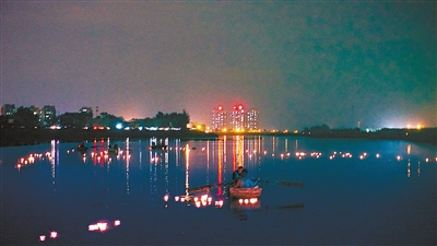 中亭碧波漾,河燈祭故人。8月25日(農(nóng)歷七月十五)晚,萬盞河燈漂浮在中亭河中。霸州市勝芳鎮(zhèn)一年一度的盂蘭盆會開始了。數(shù)千名群眾聚在中亭河崔莊子段,觀看放河燈,表達(dá)對親人的思念,并祈求事事順利。