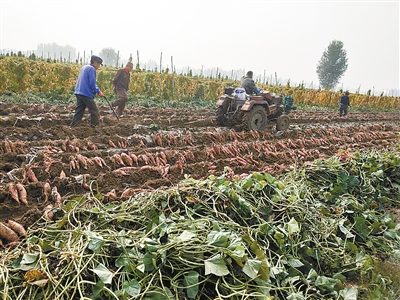 昨日,記者在一興農(nóng)業(yè)合作社看到,不同品種的紅薯和花生幾近成熟,地面上的薯秧開始進(jìn)入落秧期,土壤表面一道道被地下果實(shí)撐開的裂痕,昭示著今年又是一個豐收年。不遠(yuǎn)處,成片的大田玉米在微風(fēng)中沙沙作響,仿佛在演唱著豐收的贊歌。
