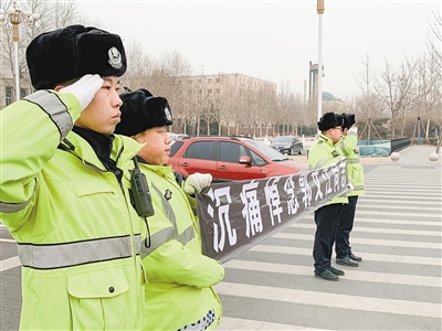 7時(shí),他在大隊(duì)一樓大廳給執(zhí)勤人員做崗前點(diǎn)名和訓(xùn)話,隨后到南大外環(huán)崗與同事一起盯早高峰。