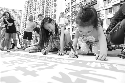 除打造絢爛月季花海,邀請(qǐng)業(yè)主共同游園外,小區(qū)還舉行了小業(yè)主才藝秀。小區(qū)小業(yè)主和來(lái)自藝術(shù)學(xué)校的小朋友為此準(zhǔn)備了豐富多彩的才藝節(jié)目。同時(shí),百余名小業(yè)主在活動(dòng)中書(shū)寫(xiě)長(zhǎng)卷,字里行間表達(dá)對(duì)祖國(guó)的祝福?!皼](méi)有祖國(guó)的強(qiáng)大就沒(méi)有我們健康快樂(lè)的成長(zhǎng)。我愛(ài)我的祖國(guó)!”小區(qū)一名小業(yè)主表示。