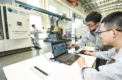 新奧動力自主研發(fā)的100千瓦微型燃氣輪機,是國內(nèi)唯一可商業(yè)化運行的產(chǎn)品,填補了國內(nèi)微燃機產(chǎn)業(yè)化空白。圖為技術人員正在對燃氣輪機進行檢測。 記者 劉向 通訊員 王衛(wèi)國 攝