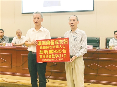 6月17日,澳大利亞“魏基成天籟列車”捐贈活動走進廊坊,為我市捐贈總價值1890萬元的藍(lán)牙助聽器和教學(xué)設(shè)備,幫助900名聽力殘疾兒童和成年人改善生活質(zhì)量,重回“有聲世界”。