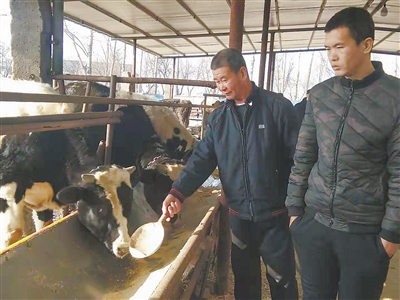圖為陳少賓(左)帶著陳謙養(yǎng)牛。記者 陳正 張旭青 通訊員 王梓任 攝