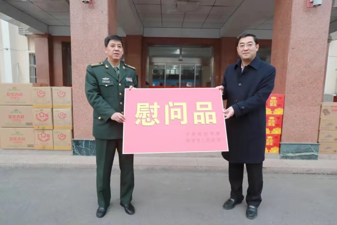 1月16日,市委副書記、代市長趙革,市政協(xié)主席李波,廊坊軍分區(qū)政委常彥明,副市長張秉舜,市政府秘書長李清濤,先后到廊坊軍分區(qū)、93792部隊、32090部隊進(jìn)行慰問,向部隊官兵致以誠摯的問候和新春祝福。