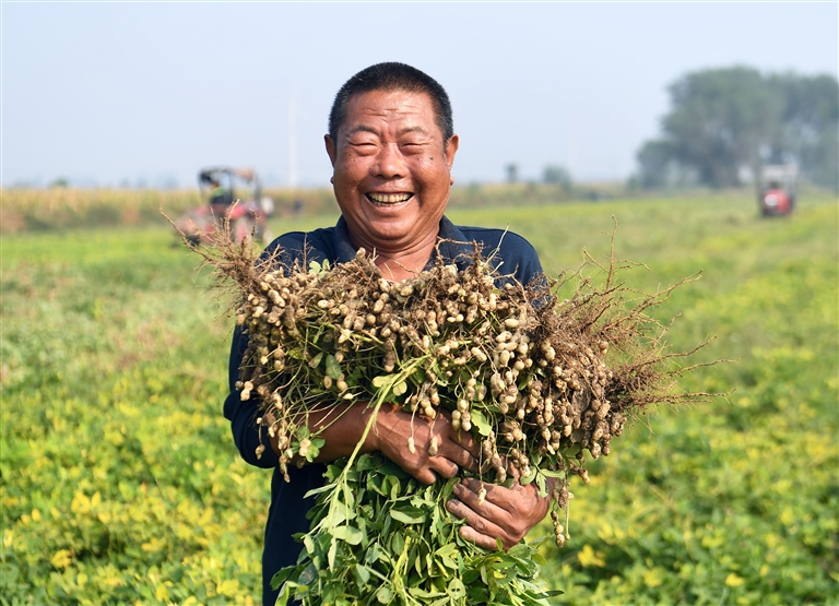 在大城縣平舒鎮(zhèn)張裴莊村花生種植基地,農(nóng)民整理收獲的花生。