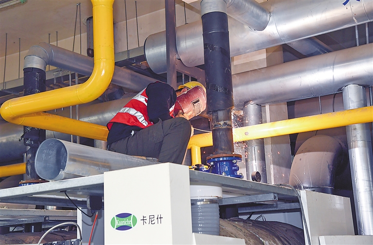 格林郡府小區(qū)供熱站的工作人員正在對(duì)設(shè)備進(jìn)行檢修。