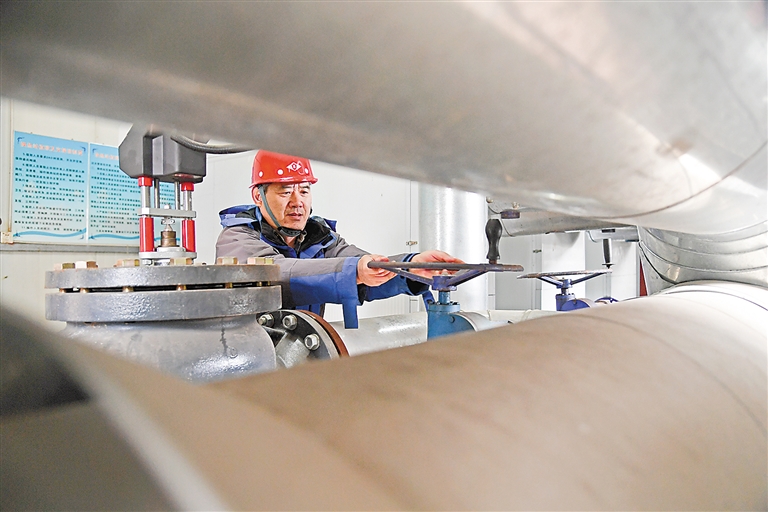 廊坊市廣達(dá)供熱有限公司的工作人員正在對(duì)系統(tǒng)管道閥門進(jìn)行檢查。