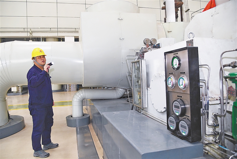 廊坊市熱電廠的工作人員正在進(jìn)行日常檢查。