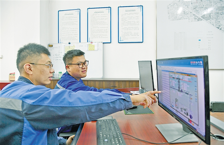 廊坊市廣達(dá)供熱有限公司的工作人員正在查看設(shè)備運(yùn)行狀態(tài)。