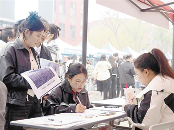 圖為學生正在填寫求職報名信息。