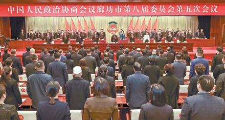 1月19日下午,政協(xié)廊坊市第八屆委員會第五次會議閉幕。這是會議現(xiàn)場。