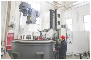 圖為生產(chǎn)車間內(nèi),技術(shù)人員正在調(diào)試超速旋轉(zhuǎn)實驗臺設(shè)備。記者 李泳辰 攝