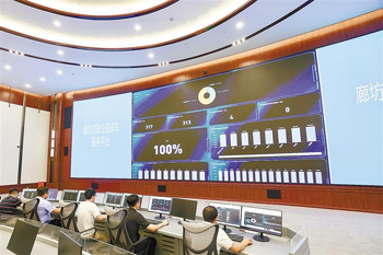 在市新型智慧城市運營中心,工作人員通過監(jiān)控大屏了解“政企直通車”服務(wù)平臺運行情況。