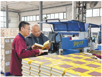 大型紙張裁切設(shè)備嗡嗡作響,工人們熟練地操控著設(shè)備;印刷機(jī)飛速運(yùn)轉(zhuǎn),油墨均勻地附著在紙張上;折頁機(jī)快速將印刷好的紙張頁碼順序折疊,全力以赴完成訂單……這是日前三河市萬龍印裝有限公司(以下簡稱“萬龍印裝”)生產(chǎn)車間的繁忙景象。