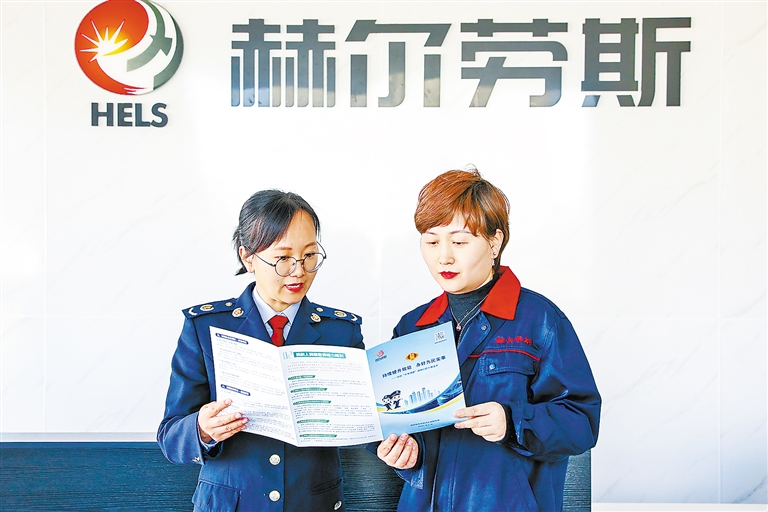 大廠回族自治縣稅務(wù)局工作人員入企宣傳稅收優(yōu)惠政策。記者 王娜 通訊員 李浩 攝