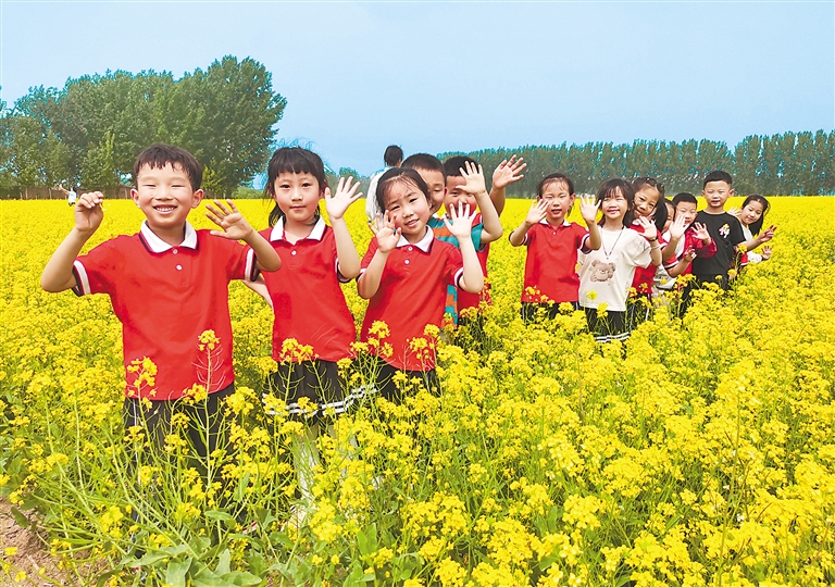 學生們在永清縣劉街鄉(xiāng)李家口村的油菜花田里開展研學活動。記者 王靜 通訊員 龐趁友 趙云飛 攝