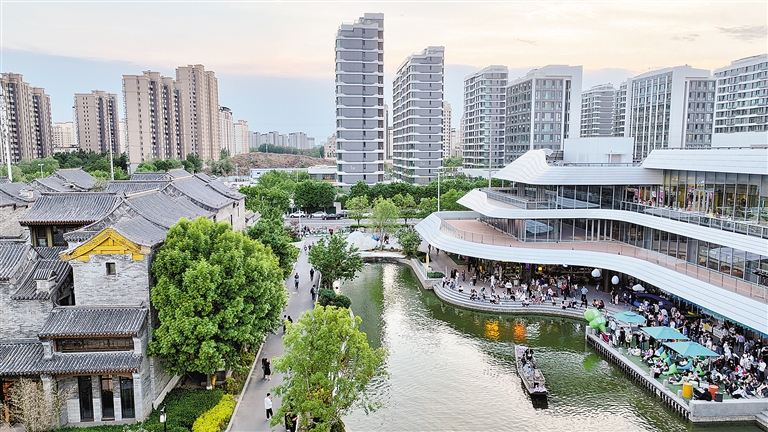 “五一”假期,夢(mèng)廊坊國(guó)際戲劇公園聯(lián)動(dòng)周邊商業(yè),吸引眾多游客前來游玩打卡。記者 賈珺 攝