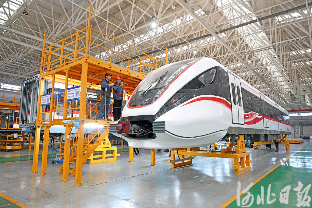 5月9日,京投裝備河北京車軌道交通車輛裝備有限公司,工作人員在總組裝車間內(nèi)工作。河北日報記者張昊攝
